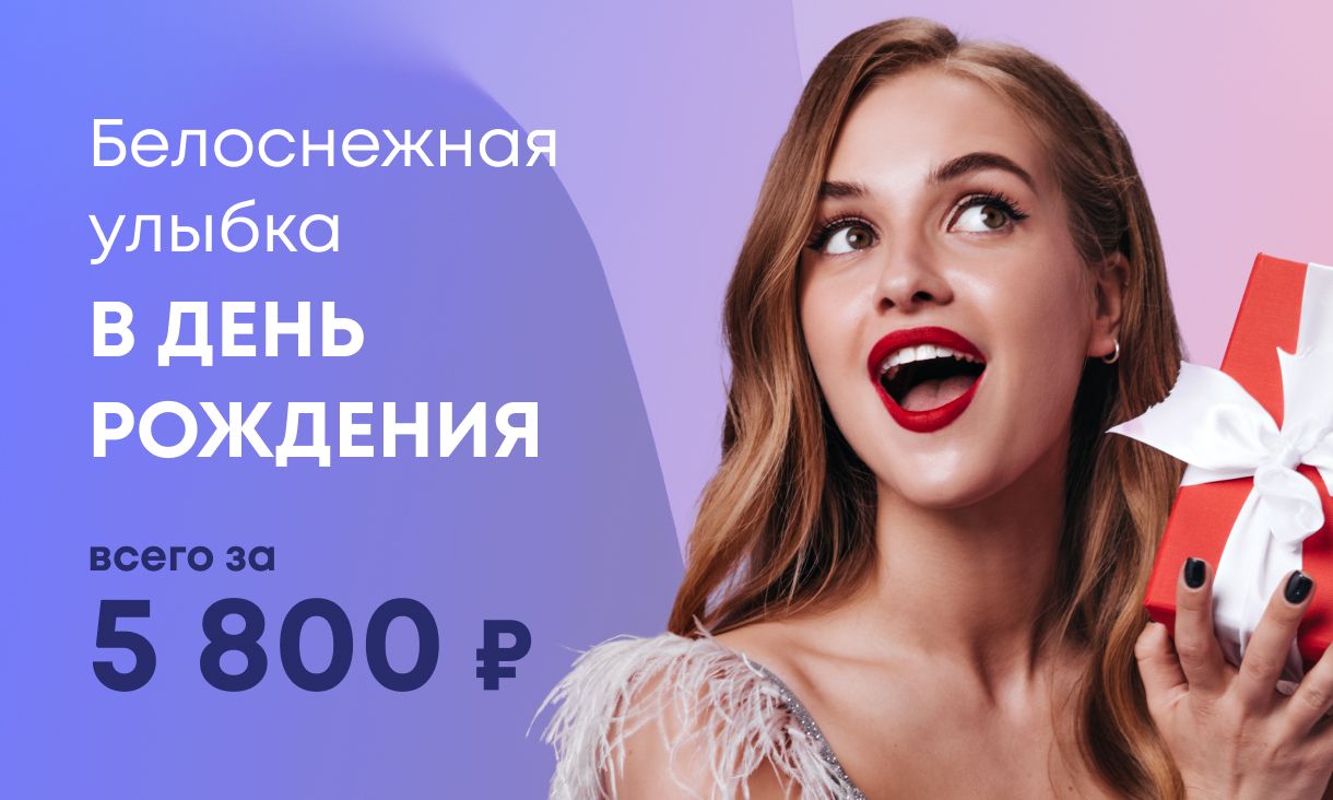 В течение месяца своего рождения Вы можете получить комплекс профессиональной гигиены в любой из наших клиник по специальной цене 5 800 рублей.