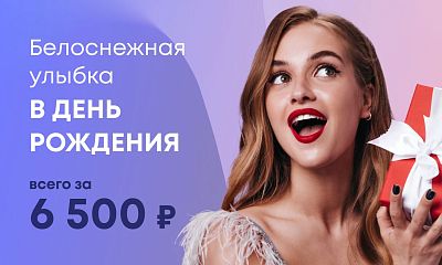 В течение месяца своего рождения Вы можете получить комплекс профессиональной гигиены в любой из наших клиник по специальной цене 6 500 рублей.