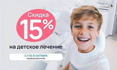С 1 по 31 октября проходит акция "Скидка 15% на детское лечение зубов!"
