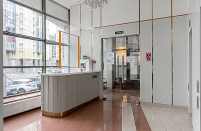 Стоматология «СТОМА» в Василеостровском районе расположена на улице Кораблестроителей, д. 32, корпус 3, литера А, этаж 2. Просторная и светлая клиника занимает два этажа, включая ресепшен на первом. Пространства достаточно, чтобы удобно разместить отделения диагностики и лечения, а также высокотехнологичное оснащение, отвечающее международным стандартам качества.