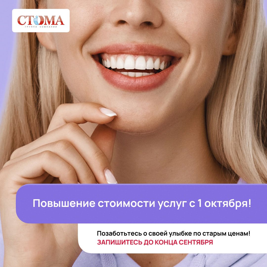 Позаботьтесь о своей улыбке по старым ценам! Запишитесь до конца сентября.