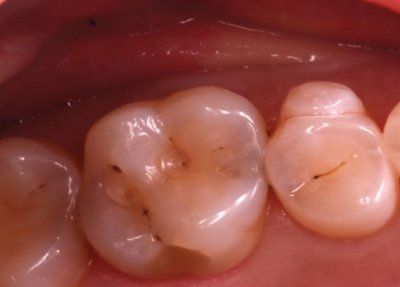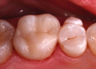 Жалобы: застревание пищи, боль при приеме сладкой/холодной пищи, эстетическое несовершенство старой пломбы.