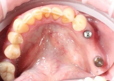 Перед имплантацией удалены зубы (45, 46, 47) и далее установлены импланты Nobel. Через 4 месяца проведено протезирование - установлена мостовидная конструкция с коронками из диоксида циркония.