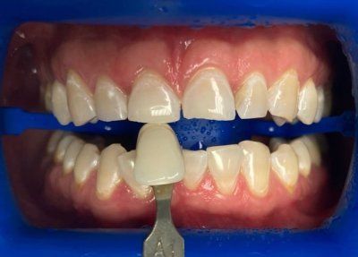 Цвет до отбеливания - А2 А3 по шкале Vita classic. После отбеливания  - А1