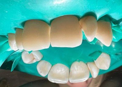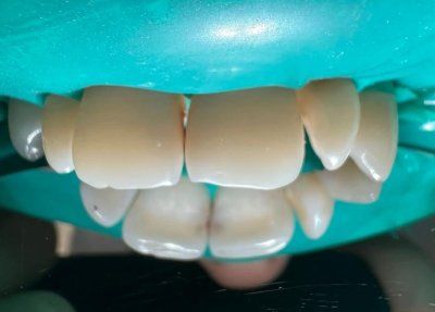 Выявлены скрытые кариозные полости между зубами. Была выполнена изоляция коффердамом, чтобы исключить попадание инфицированных кариесом тканей во время препарирования в полость рта, и предотвратить во время восстановления зубов попадание слюны, десневой жидкости - что может повлиять на качество лечения.
