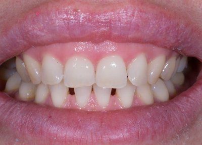 • Установлено 8 керамических адгезивных реставраций (4 вверху, 4 на нижние зубы);