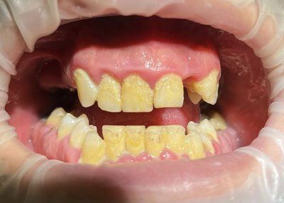 Пациенту была проведена профессиональная гигиена полости рта с использованием аппарата Prophyflex и порошка для профессионального использования с содержанием Кальция, удаление зубных отложений с использованием ультразвука, завершение процедуры полировкой зубов с использованием пасты SuperPolish, а также медицинской обработкой десен.