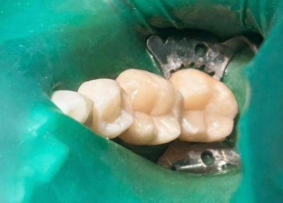 Клинический случай: 47 зуб замена пломбы, под пломбой кариес; 46 зуб кариес; 45 зуб контактный кариес.