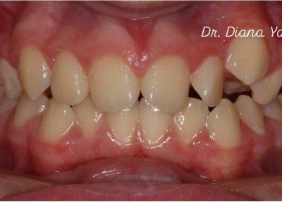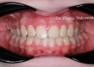 Данное лечение включало исправление скученности и ротаций зубов с использованием брекет-системы.